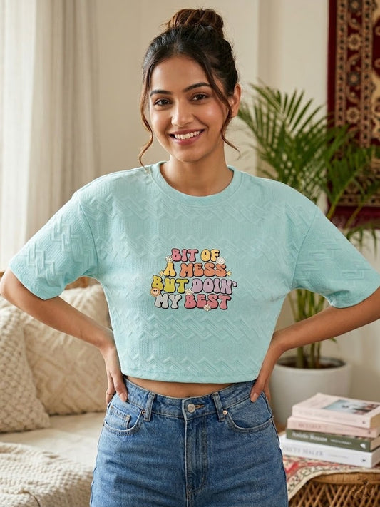 59% Discount"Doin' My Best" Textured Pastel Crop Top