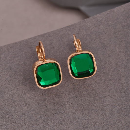 Stunning Square Shape Green Diamond Earrings For Women