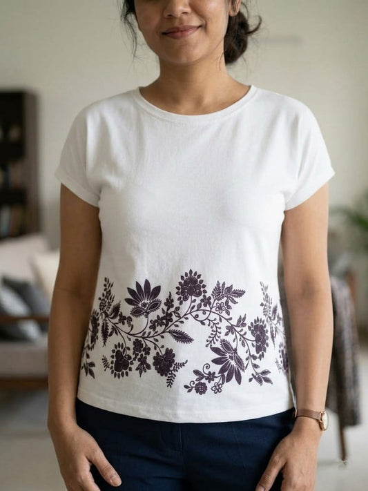 64% DiscountElevated Bloom: White Graphic Floral Border Tee
