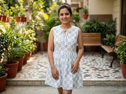 Premium Paisley Print Sleeveless Peplum Top – White & Teal